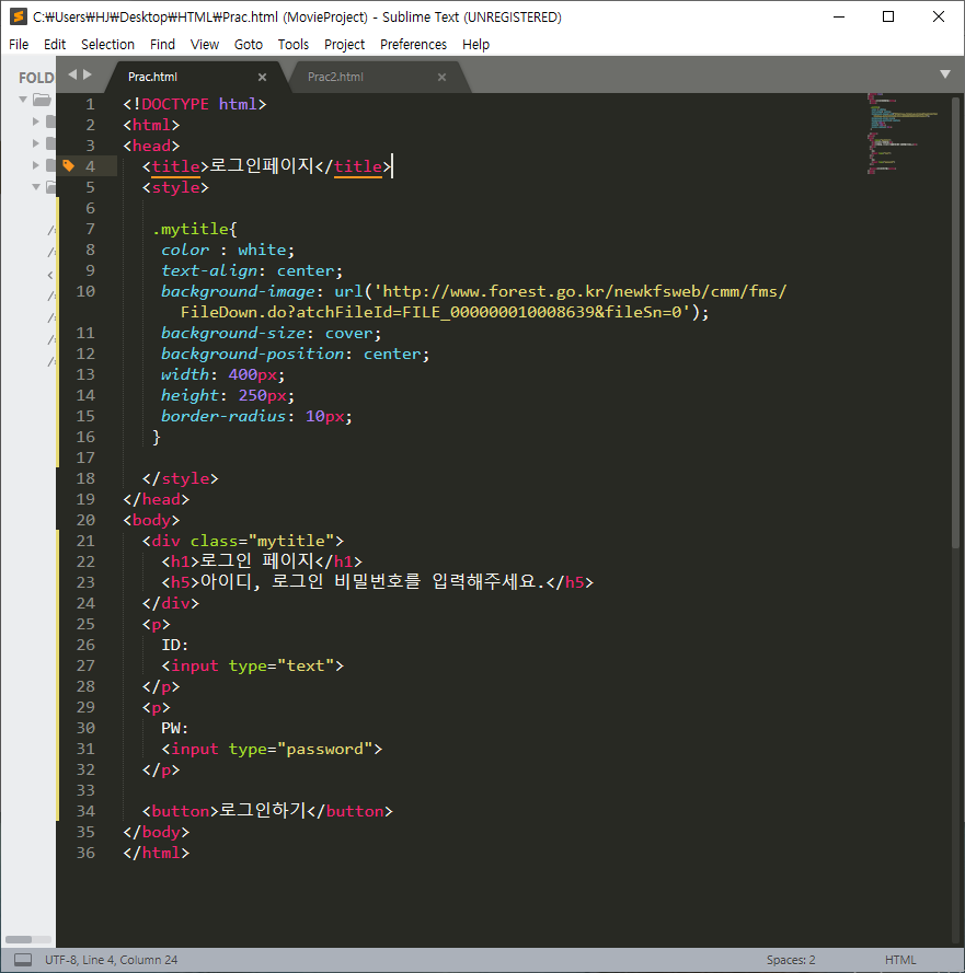 기존 로그인 페이지에 <div>태그에 mytitle이라는 이름표를 붙여 <style>태그에 여러 속성들을 주었다.